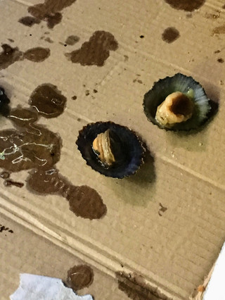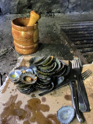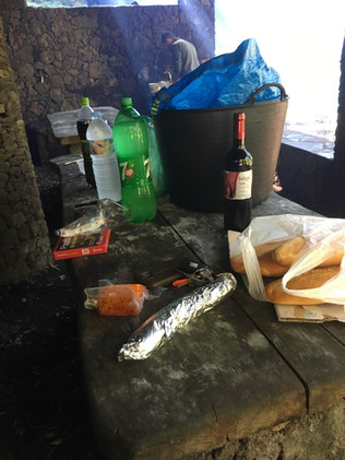 For our meal, we had lapas, a specialty of El Hierro. I had never even seen one out of the shell before, but they are limpets! Héctor had gotten up bright and early that morning and gone out to the sea to collect fresh ones for us :D We put them directly on the grill over an open flame and watched them closely--they only cook for about 90 seconds each. While cooking, they are brushed with homemade mojo made with garlic, oil, and saffron. They were delicious and I'm so glad I tried them with people who knew what they were and how to eat them. :)