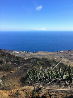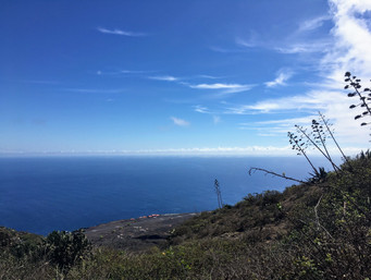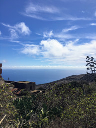 The trail begins pretty flat for a while, and then you get to a beautiful viewpoint overlooking the ocean from the edge of Villa de Valverde, which is about 1,900 above sea level. That didn't seem very high to me (coming from Utah), but it certainly is when you think that you start from the 0 feet at the beach! The first part of the hike is covered with prickly pear cacti (whose fruit is a delicacy in El Hierro).