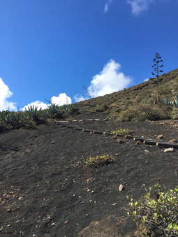 Next, I started the main descent. First, you use the logs strategically placed to zigzag down the volcanic sand for a while, before just going straight down the hill. Maybe they ran out of logs :) It's a lot of downhill, and definitely a different type of exercise than hiking up a mountain. The view is breathtaking and you can feel the ocean breeze the whole time!