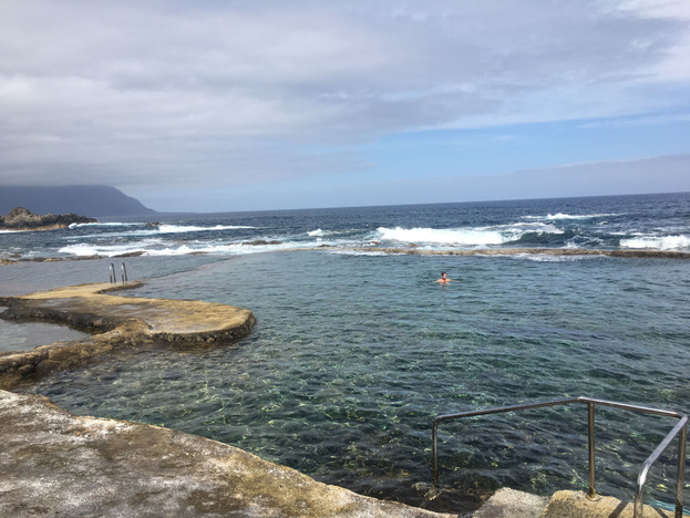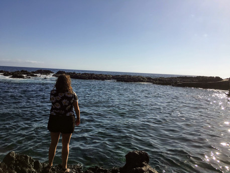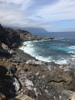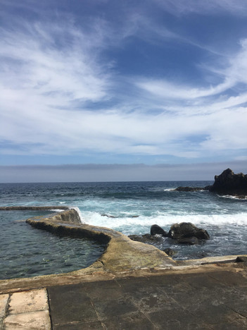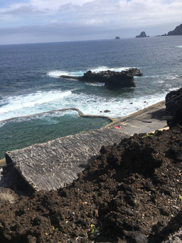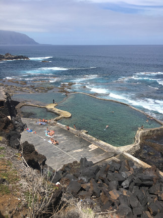That evening, we went to Tacorón, a beach in the south that I have been meaning to go to but which is very difficult to get to without a car. It is a beautiful little cove with that same stunning turquoise water, rocky shores, and sea walls you can swim over to and watch the waves lap in. It is one of El Hierro's many natural pools, a tidal pool perfect for swimming and semi-protected from the waves.
