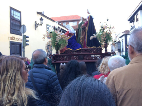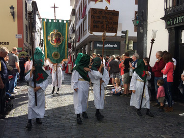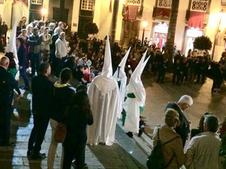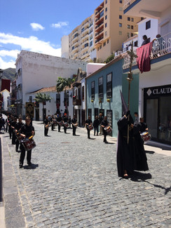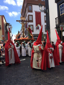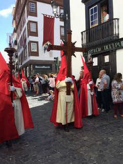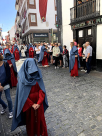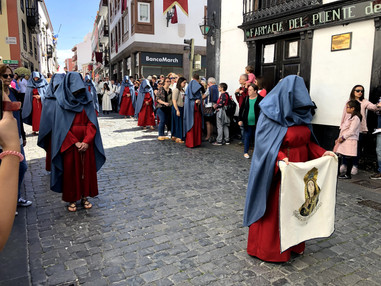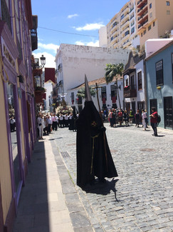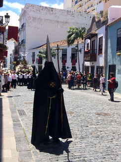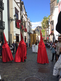 A highlight of our time in La Palma was seeing some Holy Week parades! I have seen these once before, when I was studying abroad in Burgos, Spain during college. But I never expected to see them here, and my parents have never seen anything like it! This tradition dates back to the Spanish Inquisition, which makes sense, because seeing these ominous figures walking towards you would certainly make you want to repent and convert NOW. Lots of them were carrying crosses and several were barefoot and had real chains on their ankles, dragging menacingly across the cobblestones, clinking with every step.