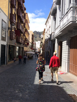 We landed in the La Palma airport and managed to navigate the most confusing parking garage yet to find our rental. Then, we walked around the city for a little while until we could check into our AirBNB. It was a beautiful sunny day to wander through the port town and we saw lots of mountains, colorful houses, and plazas, many of which I remembered from my time here during Los Indianos in March.