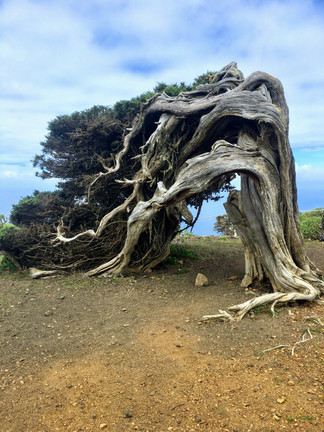 We also drove along a pretty rough and narrow dirt road to finally reach the symbol of this island: el Sabinar. It is a unique juniper forest, the only one in the Canary Islands, and full of bent and twisted but very much living trees that have adapted to the constant wind on this part of the island.