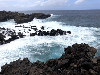We took a scenic, twisty, and mountainous road down from the lighthouse, past rocky coastlines with beating waves and lots of black sand hills.