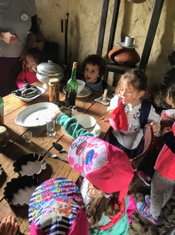 After the lizards, we saw some traditional houses, complete with flower-covered crosses, an old-fashioned water filter, ceramic plates, and more. We really struggled with the no touching rule, but all children and artifacts made it out intact in the end, so I call it a grand success.