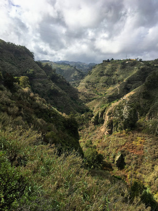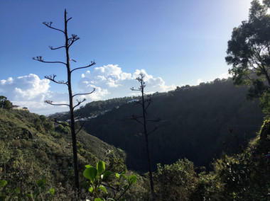This hike was called "The Trace of Dorama's Jungle" so we walked along roads and trails that followed the ancient forest of Gran Canaria. Only 1% of it still exists, but what we did see was beautiful! There were lots of succulents, cacti, ferns, and colorful flowers. I also saw a pear (I think) the size of a cantaloupe. We even walked through a patch of what I swear was a bamboo forest, although it seems like there couldn't be bamboo on this island. ¯\_(ツ)_/¯