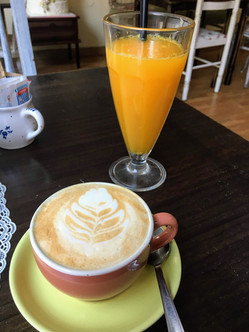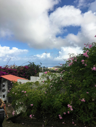 We started our journey by driving up a long, winding road. The bus was quite big and the road was quite small. A couple of times, we met a car on our journey, and I was certain someone was going to lose a mirror or go off a cliff. But we all made it :) The views on the way were spectacular; we passed farms on the side of the mountain, saw the ocean for miles, and saw some beautiful, colorful houses. They also gave us snacks! Water (:D), juice, chips, dried fruits and nuts, chocolate, and granola bars.